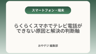 らくらくスマホでテレビ電話ができない原因と解決の判断軸結論:まず「どの“テレビ電話”を使いたいか(キャリア機能かアプリか)」を確かめ、5分でできる切り分けチェックを行えば、多くの問題は設定や契約の確認で解決できます。この記事で分かること 「...