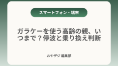 判断基準は「今後1年で本人にとって必須となる手続きがオンラインに移行する可能性が高いか」「代替(家族代行・窓口利用)が安定しているか」です。落とし穴は「慌てて高機能端末へ切り替え、使いこなせずに放置する」こと。回避策は、ガラケー継続の間に「再検討トリガー」を設定しておく(例:自治体手続きがオンライン限定になったら再検討)ことと、電話以外の最低限の連絡手段(固定電話・家族の定期連絡)を維持することです。