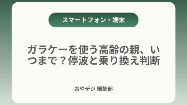 スマートフォン・端末 ガラケーを使う高齢の親、いつまで使える?停波と乗り換え判断 ガラケーを使う高齢の親、いつまで使える?停波と乗り換え判断ガラケーを親が使っている場合、端末が使えなくなる「期限」が原因で焦る前に、まずは端末と契約(名義・回線方式)を確認してください。即対応が必要な場合と「保留でよい」場合が分かれるため、... 2026.02.19 スマートフォン・端末
