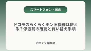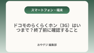 ドコモのらくらくホン(3G)はいつまで?終了前に確認すること結論:ドコモの3G(FOMA/iモード)は2026年3月31日に終了します。3G専用のらくらくホンは停波後に通話やデータが使えなくなるため、端末と回線の確認を早めに行ってください。...