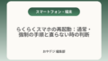 注意点として、らくらくスマホ向けの独自ランチャーや大きな文字表示があると、一般的なAndroidの表記と位置がずれることがあるため、画面の上下や「詳細設定」など階層を確認してください。見つからない場合は型番を控え、メーカー/キャリアのマニュアルを参照すると確実です。