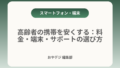 本人が乗り気でない、近くに助ける人がいない、費用が家計に響く場合は見送る判断も合理的です。見送る間の代替案としては、ガラケーのまま維持する、通話専用の簡易携帯を用意する、地域の見守りサービスを利用するなどがあります。自治体や民間の支援制度を活用できるケースもあるため、完全に断念する前に制度を確認するとよいでしょう。出典:エックスモバイル(補助まとめ)